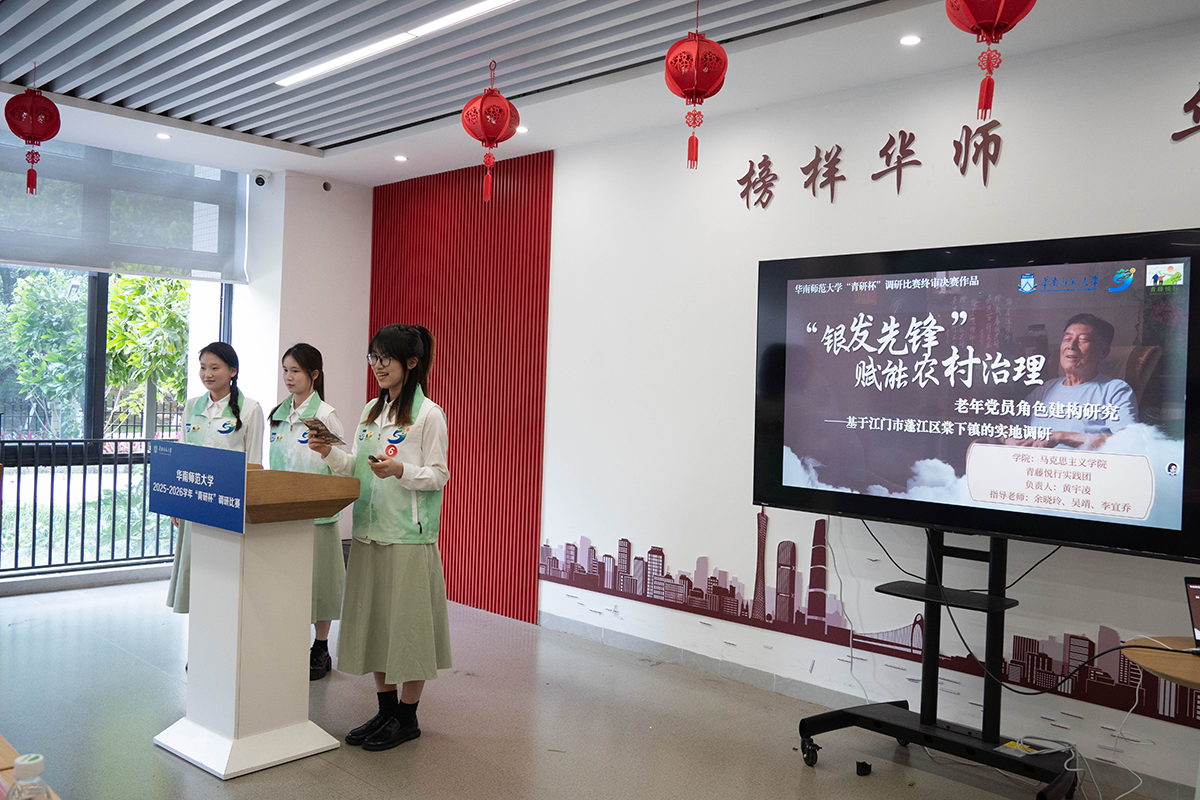 活动现场还为华南师范大学2025年社会实践品牌项目、典型案例及华南师范大学“青研杯”调研比赛获奖队伍颁奖。其中,环境学院“追梦逐蓝”突击队、国际商学院“罗阳禾硕”突击队现场展示了团队通过“科创+”“数字+”等方式助力乡村振兴的实践成果。