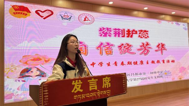 近日,华南师范大学研究生支教团西藏昌都分队在昌都市第三初级中学开展“紫荆天使护新芽”中学生青春期健康主题教育活动。活动通过主题讲座与互动体验相结合的形式,围绕青春期生理心理变化、性别平等、预防性侵等内容,为学生筑牢成长安全防线。