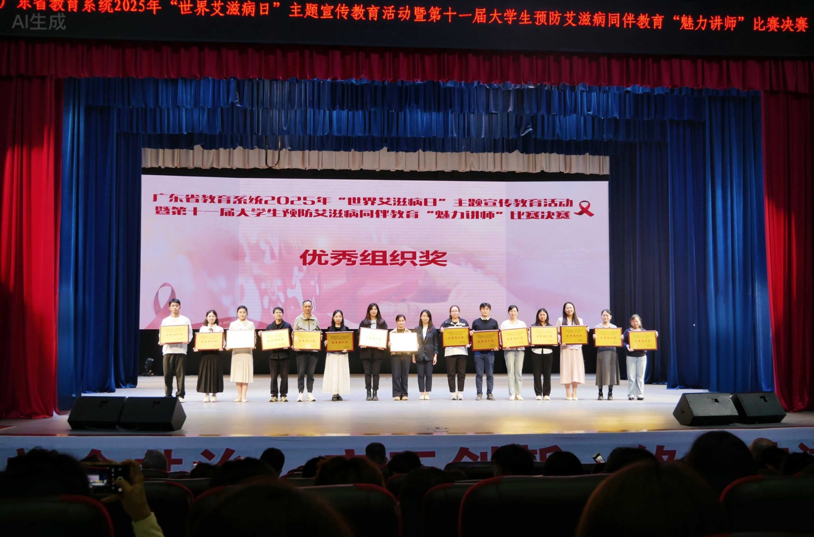 2025年12月1日,由广东省教育厅主办的第十一届大学生预防艾滋病同伴教育“魅力讲师”比赛决赛在广州体育学院落下帷幕。我校生命科学学院研究生陈菁菁同学代表学校参赛,凭借扎实的专业知识、生动的宣讲表现和出色的教案设计,最终荣获决赛一等奖,我校同时获评“优秀指导教师奖”与“优秀组织奖”,充分展现了我校学子在防艾教育领域的综合素养,彰显了我校红十字文化建设的组织成效与育人实效。